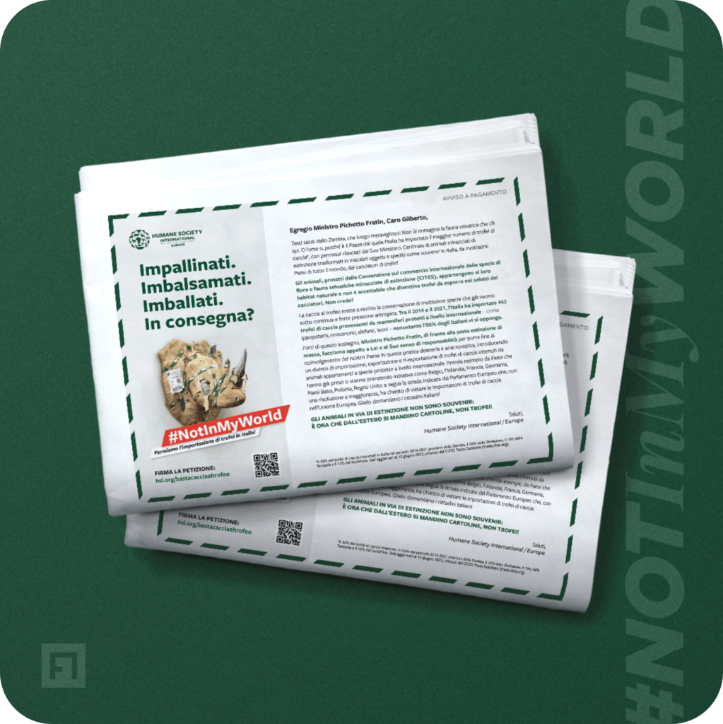 Durante il lockdown del 2020, inoltre, Humane World for Animals Italia ha dato vita ad un’iniziativa che ha coinvolto ancora più direttamente i sostenitori della campagna #BastaAnimaliInLockdown: attraverso una landing page realizzata appositamente da Filarete, gli utenti hanno avuto la possibilità di compilare un form per ricevere gratuitamente una delle mascherine di Humane World for Animals create dai nostri grafici e unirsi all’iniziativa social proposta.